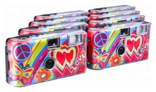 Topshot lot de 8 appareils photo jetables pour 27 photo jetables love pour 27 photos, avec flash. Topshot lot de 8 appareils photo jetables flower power